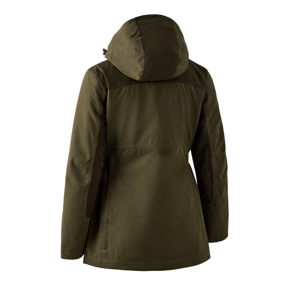 Kurtka Lady Eagle została stworzona z myślą o komforcie podczas aktywnych polowań w każdych warunkach pogodowych. Dostępna dla początkujących myśliwych, jak również doświadczonych, którzy wymagają wszechstronności. Została zaprojektowana tak, aby zapewnić wygodę i funkcjonalność. Detale ze sztucznego zamszu podkreślają klasyczny styl, a membrana Deer-Tex® Performance Shell sprawia, że kurtka jest wiatroszczelna, wodoodporna i oddychająca. Kurtka posiada szereg praktycznych funkcji, takich jak kieszeń na radio z paskiem antenowym czy dwie przestronne kieszenie z przodu. Regulowane mankiety, elastyczne ściągacze w talii i wstępnie uformowane łokcie zapewniają dobre dopasowanie, a odpinany kaptur pasuje do każdego stylu. Zaprojektowana, aby sprawdzać się o każdej porze roku.