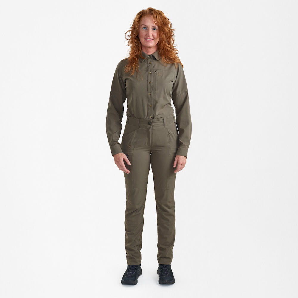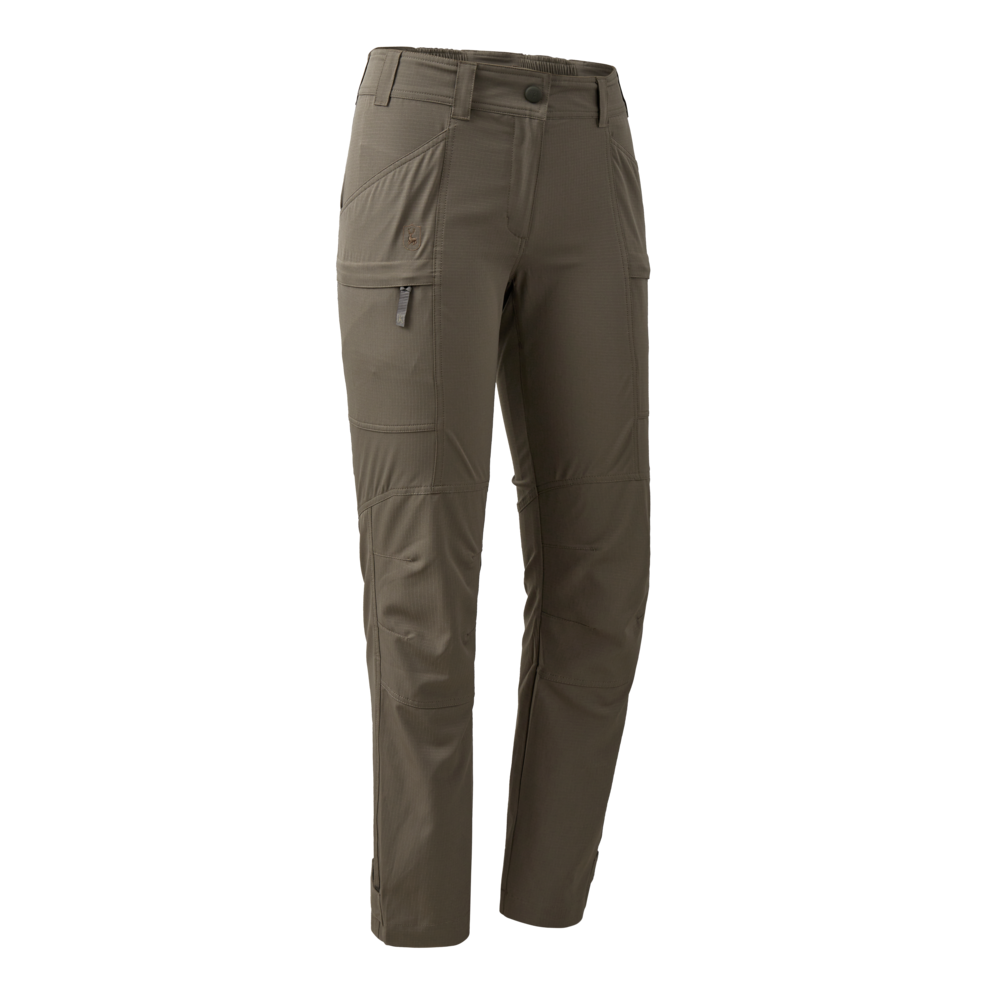Spodnie Lady Canopy oferują idealny komfort, doskonałą oddychalność i czterokierunkową rozciągliwość, zapewniając swobodę ruchów. Są wysoko funkcjonalne i oddychające, stworzone z myślą o letnich polowaniach lub przygodach na zewnątrz. Gwarantują wygodę przez cały dzień dzięki ściągaczowi w talii, profilowanym kolanom oraz regulowanym nogawkom. Różne kieszenie dodają wszechstronności, a lekki, oddychający i szybkoschnący materiał zapewnia najwyższy komfort.